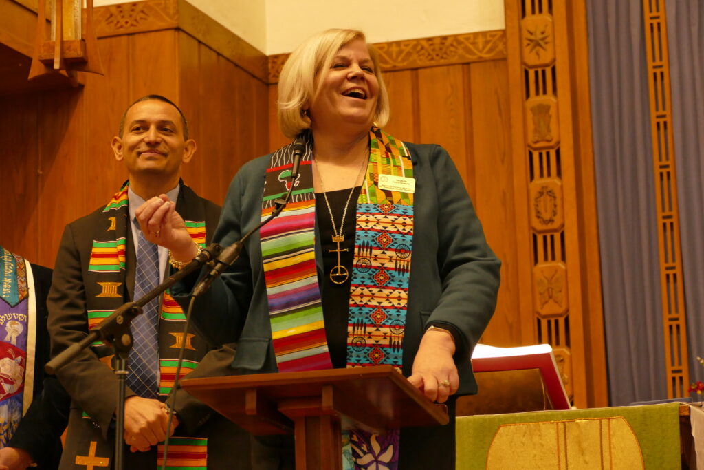 The UCC’s Associate General Minister Rev. Shari Prestemon spoke on the importance of moral courage, urging lawmakers and faith communities to act boldly in defense of immigrant dignity. “Do justice and love kindness and grow a spine,” she encouraged those gathered. “Have a sense of moral outrage and moral courage that will not be stopped by any evil empire, but that will stay in the streets, will speak loud, will speak with wisdom, will speak with fire. As you go into those offices today, show your faith and show your spine.”
