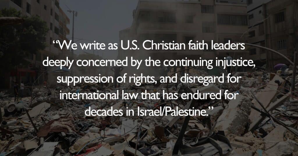 “Even as our primary focus for months has been on calling for an immediate end to the violence in Gaza and throughout Israel/Palestine, we know more must be done by the United States government to work toward a just and permanent solution that addresses the core issues so that international human rights are upheld and the most vulnerable are protected,” the letter reads.