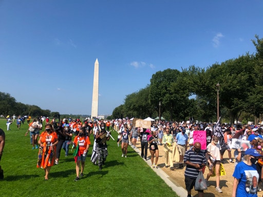 Thousands gathered in a procession to the National Mall, demanding federal legislation to protect and expand access to the ballot. The marchers also advocated for D.C. statehood and a number of social justice issues. Among them were increasing the minimum wage, eliminating student loan debt and ending gun violence.