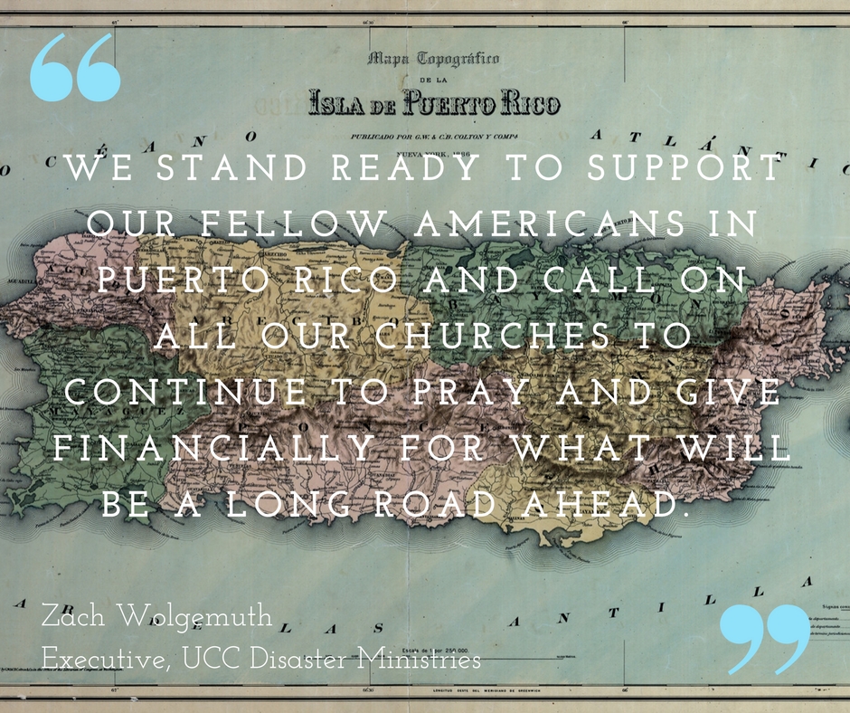 “We stand ready to support our fellow Americans in Puerto Rico and call on all our churches to continue to pray and give financially for what will be a long road ahead,”said Zach Wolgemuth, UCC Disaster Ministries executive. Gifts to the UCC Hurricane 2017 fund will be used to assist as long-term needs become more clear.
