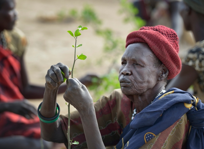 South Sudan woman eats lalob tree leaves to survive. Photo copyright Paul Jeffrey.