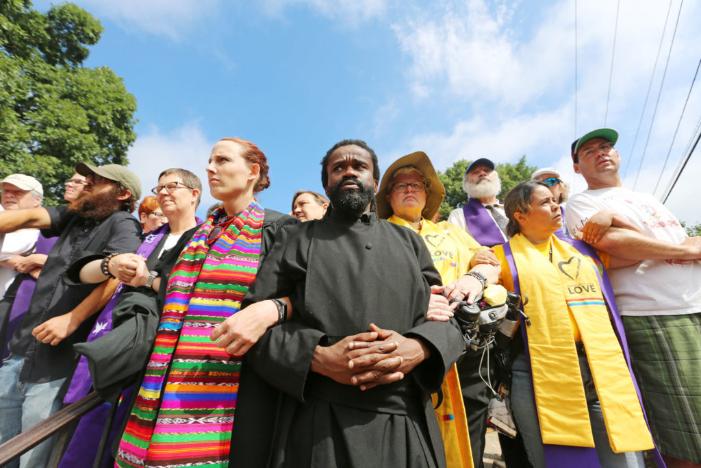 “They showed up, put their bodies on the line,” said Destiny Aman, of Hope UCC in Alexandria, Va., of the 50 clergy from several traditions who linked arms outside the park area. “While they were holding that space, that space was peaceful, to the degree that it could be a prayerful place because they were there.”