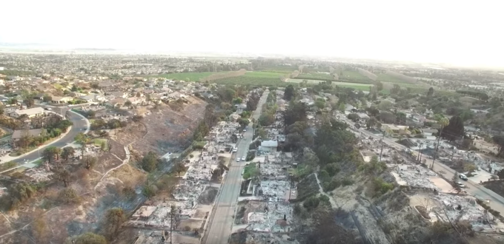 Residents are just being allowed back into their neighborhoods, with police escort, to survey the damage from the Thomas Fire, which continues to burn to the southeast, forcing evacuations in Santa Barbara, where Bergstrom lives. The fire, which covered 30 miles from Ventura to Santa Barbara, is the biggest of a number of blazes burning across Southern California. Right now, it’s the third-largest wildfire in modern California history at 270,000 acres, on track to become the largest. Fire crews have the blaze about 45% contained, and officials expect it to burn into January.
