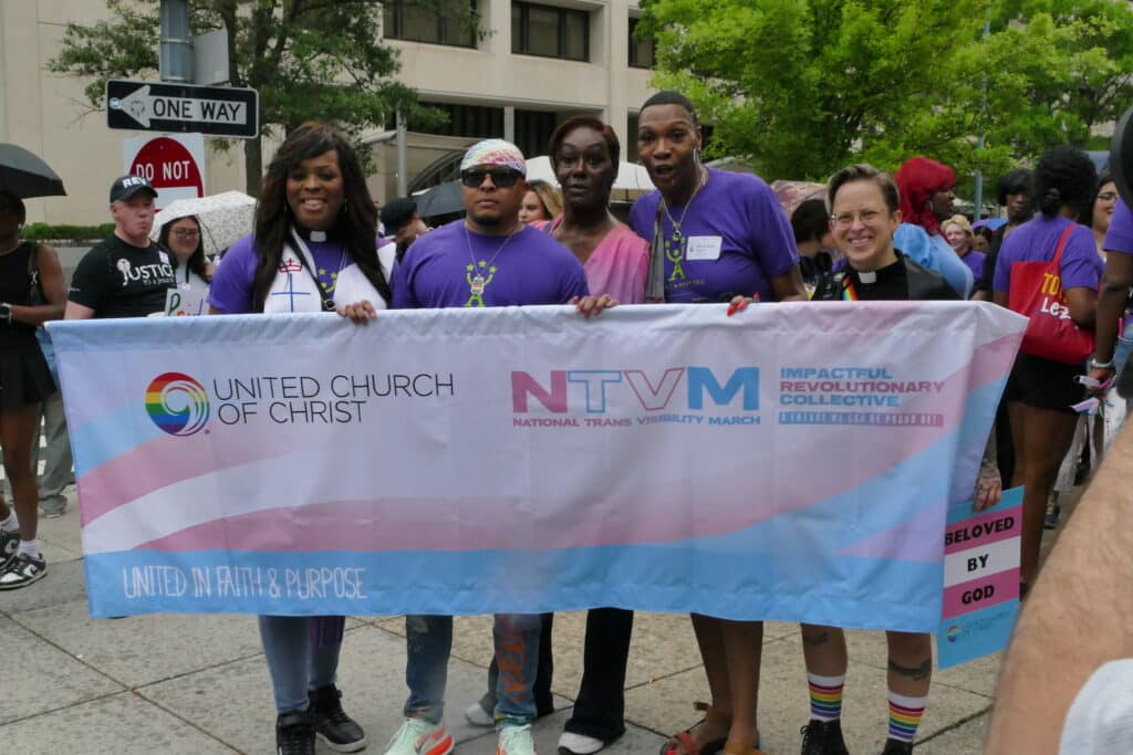 UCC members gathered on Sunday morning, June 8, to march alongside the National Trans Visibility March toward the International Rally and March on Washington for Freedom as “church on the move.”