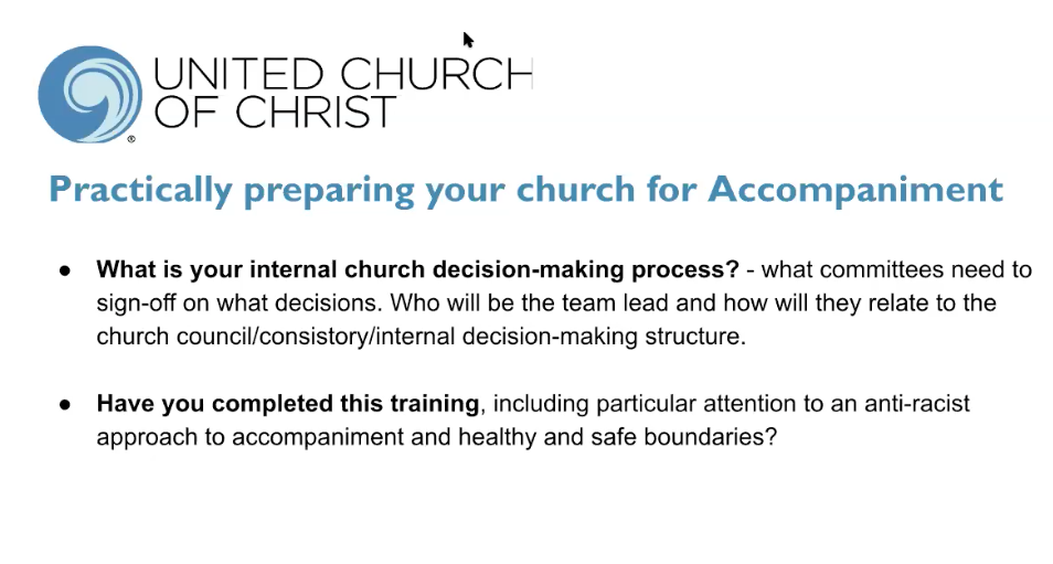 “Over the past year and a half, the number of asylum seekers arriving in the U.S. has increased significantly, and faith and community groups across the country – including numerous United Church of Christ churches – have taken the faithful step to offer care and welcome to those seeking protection. This webinar covers the basics of how to do asylum accompaniment while providing a space to share expertise and experience from congregations already deeply engaged in this work. Additionally, this webinar precedes the release of the UCC Asylum Accompaniment Toolkit to help walk churches through a new or on-going ministry of accompanying asylum seekers. This toolkit will be published shortly. Justice and Local Church Ministries and Wider Church Ministries are proud to collaborate on this webinar and to support our sisters and brothers around the country doing the work of welcome.” -Amanda Sheldon