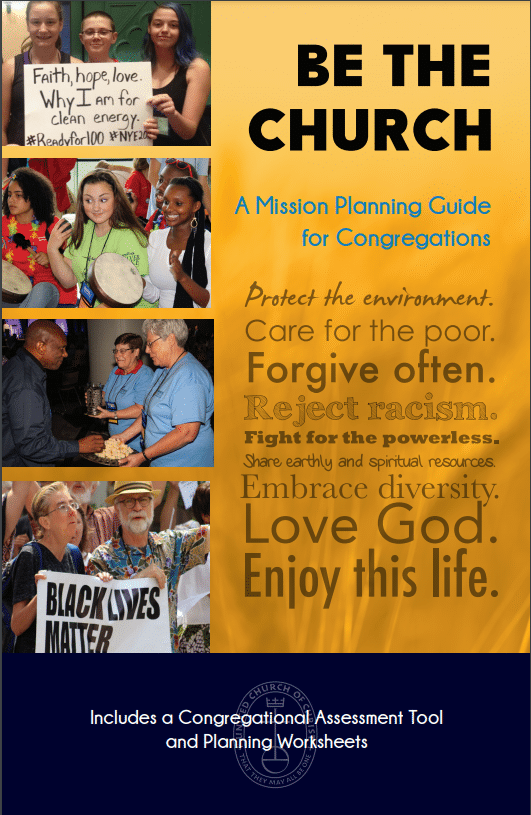 Welcome! Because of the resonance with the “Be the Church” banner across the life of the UCC, we have been working to develop some innovative, adaptable, and concrete resources for congregations. The goal of these resources is to support local churches in embodying more fully each of the “Be the Church” statements within their community contexts. The first resource—the Be the Church Mission Planning Guide—provides congregations with a process for planning and engaging in this work, as well as assessing and discerning missional directions. Over time, our hope is to develop more detailed resources around strategic planning, realigning church resources for greater missional impact, measuring outcomes, and listening/engaging one’s community to assess needs.
