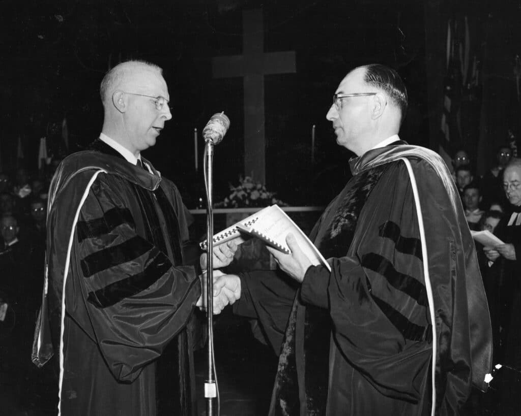The story of the United Church of Christ is the story of people serving God through the church. Co-President James E. Wagner, a graduate of Lancaster Seminary, parish minister, seminary professor, and instructor in Bible, brought intellectual and spiritual stature, wisdom and brotherly warmth to match the generous personality of Co-President Fred Hoskins, gifted Congregational Christian professor and pastor, of liberal theological orientation and consummate organizational ability.