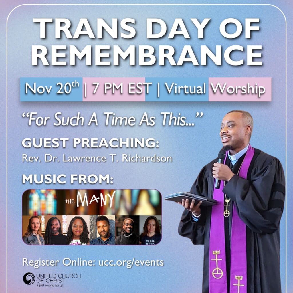 Join the United Church of Christ this Nov. 20 at 7p.m. Eastern time for a special worship service to share space remembering our trans siblings and celebrating the divine within them.